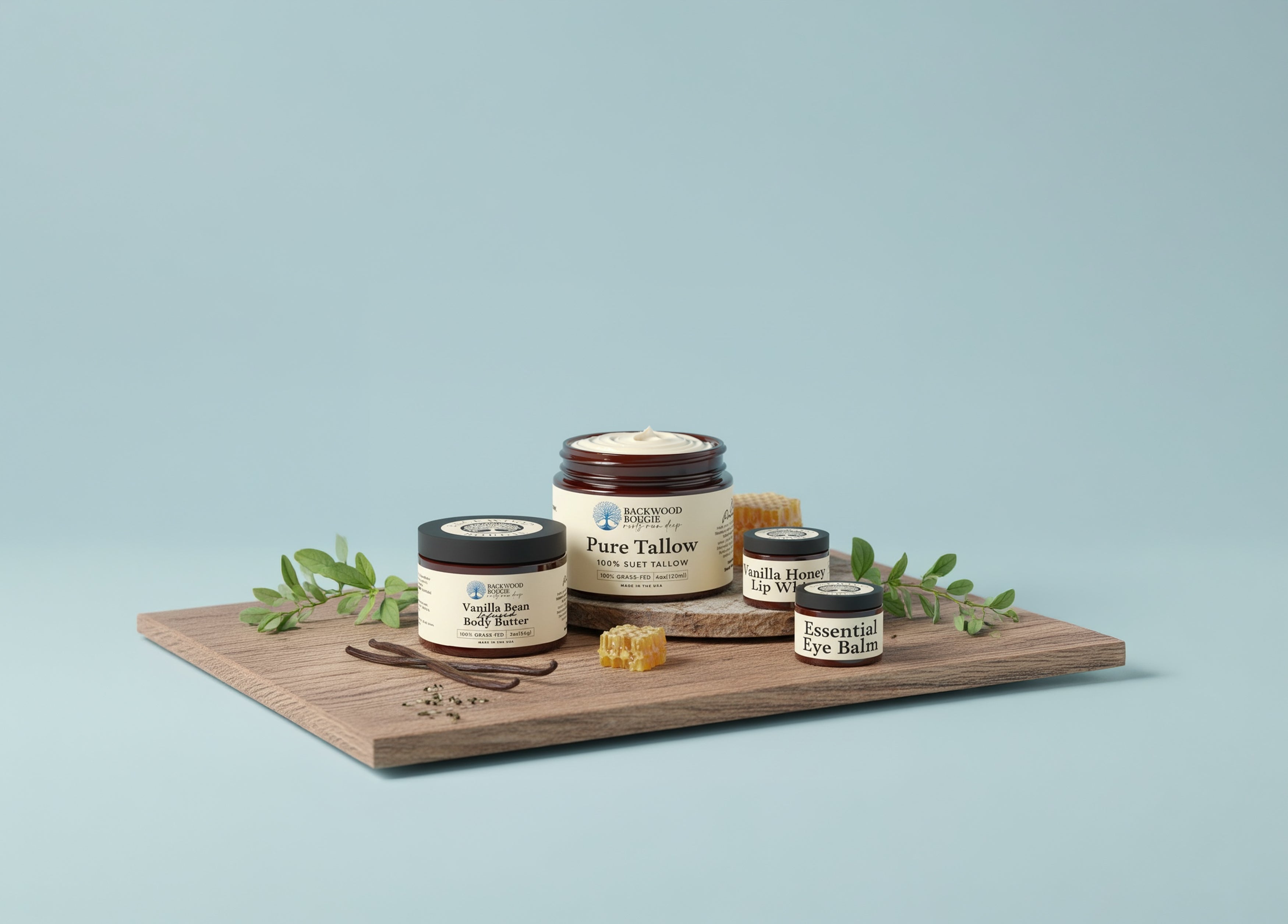 We believe the best skincare comes from the land—not a lab. Every Backwood Bougie product starts with grass-fed tallow and old-school wisdom, made to restore, protect, and nourish the way nature intended.